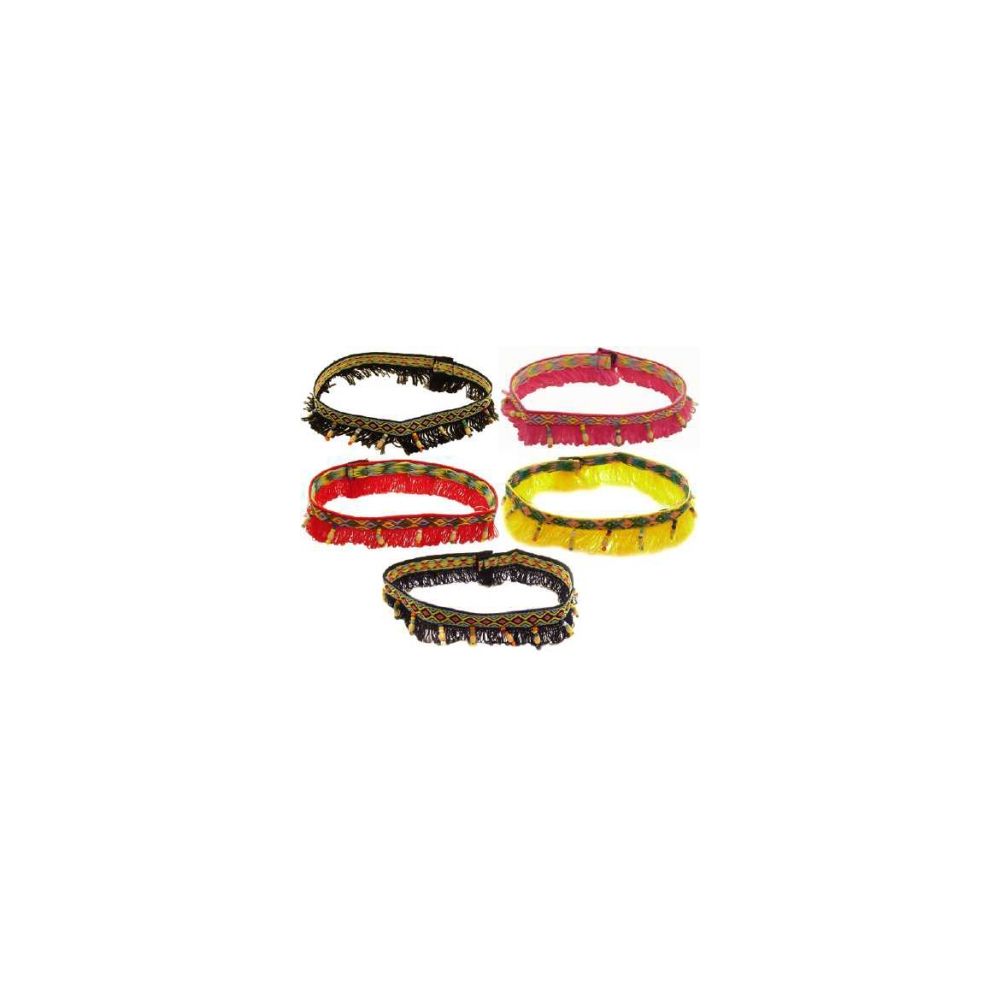 Teen necklace, n2727, assorted color cloth, with embroidery and multi-color beads, necklaces have fringe edging, colors include red, yellow, black, blue, green, and brown, Touch Closure closure