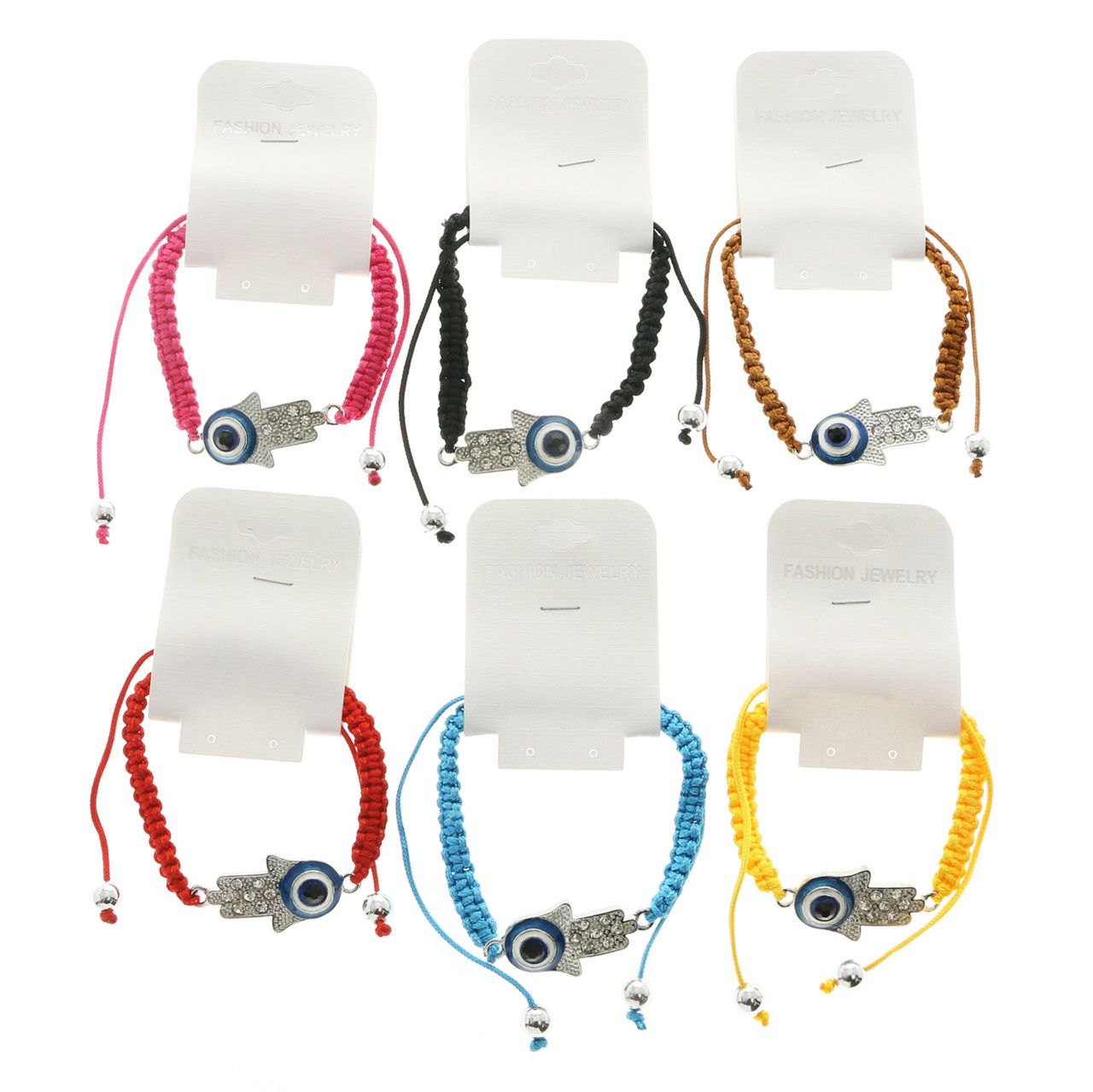 Add a touch of bohemian chic to your wrist with these stylish Braided String Bracelets. The hand-eye charm adds a unique touch.
