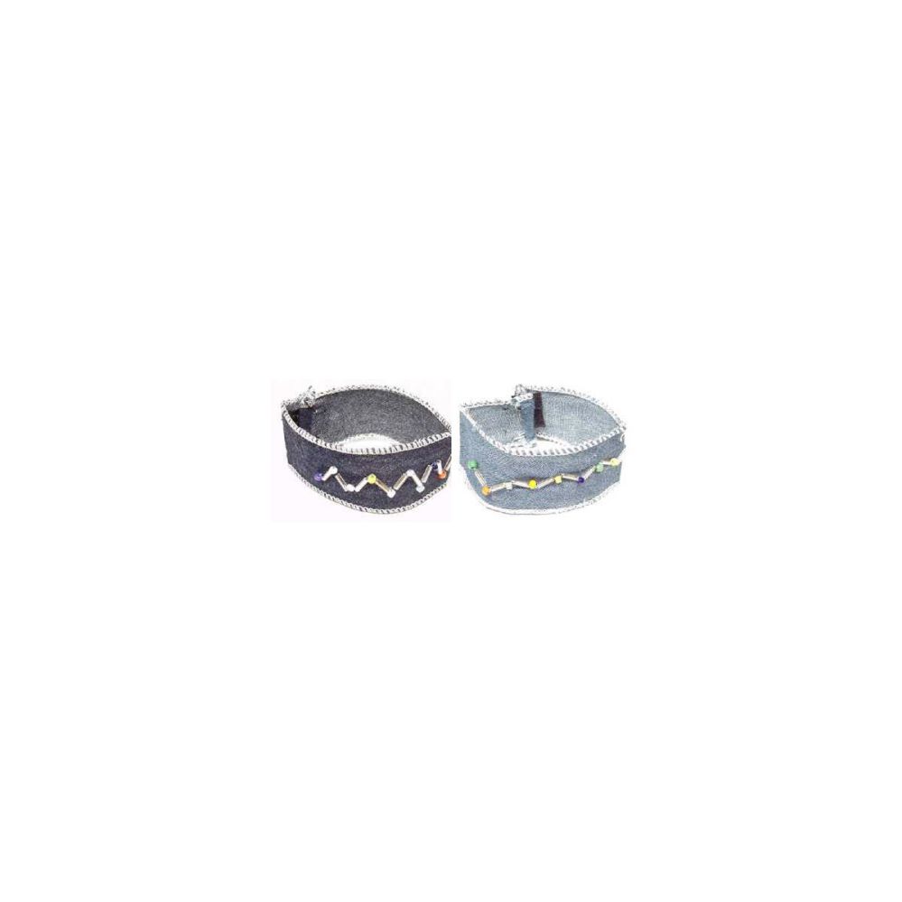 Bracelet, b2493, assorted shades of denim, with multi-color beads, Touch Closure closure, Each bracelet is individually carded and poly bagged ready for display.