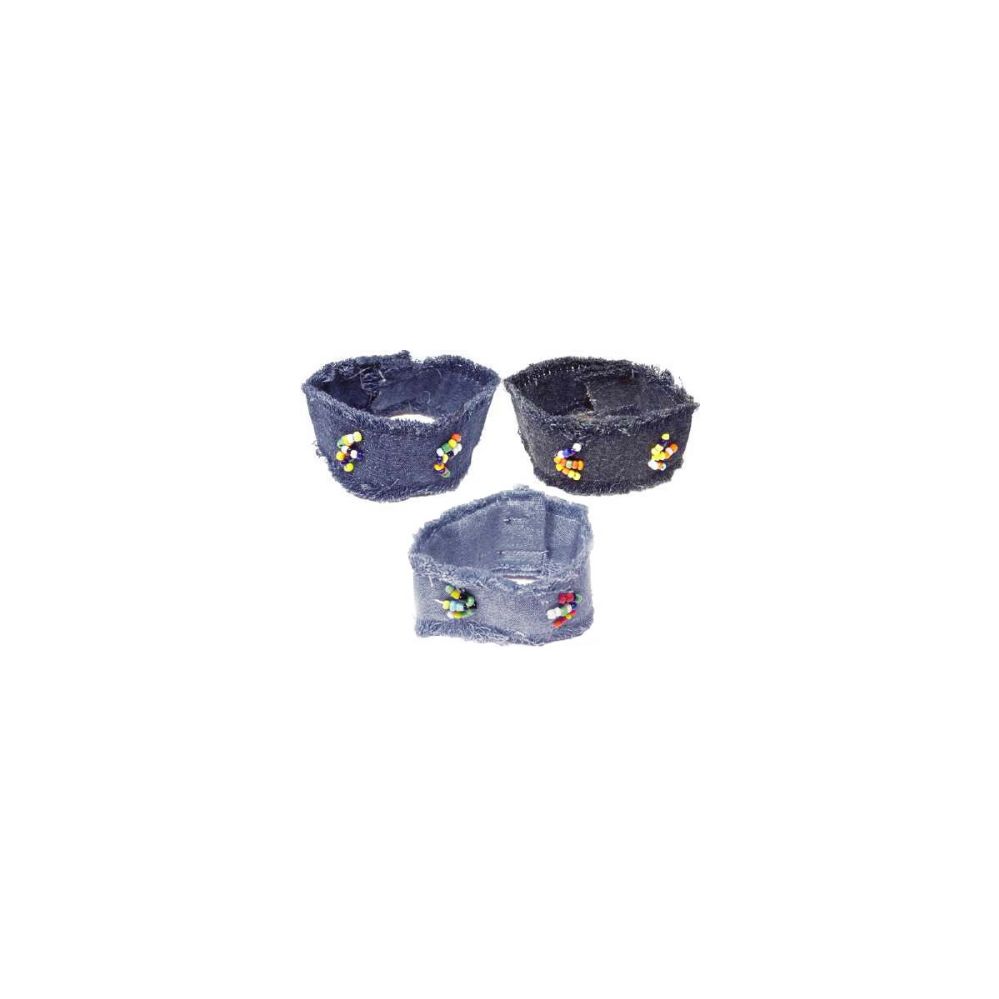 Bracelet, b2494, assorted shades of denim, with multi-color beads, Touch Closure closure, Each bracelet is individually carded and poly bagged ready for display.