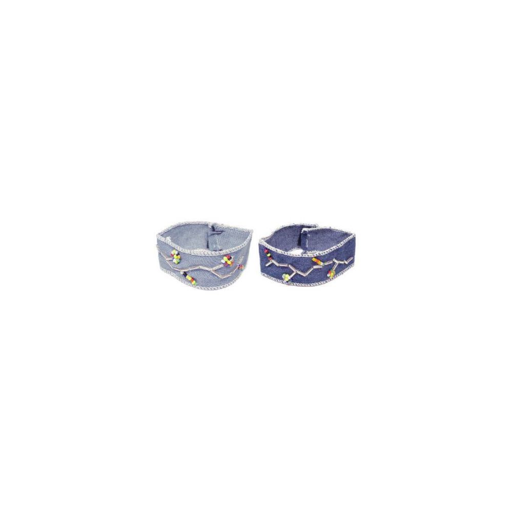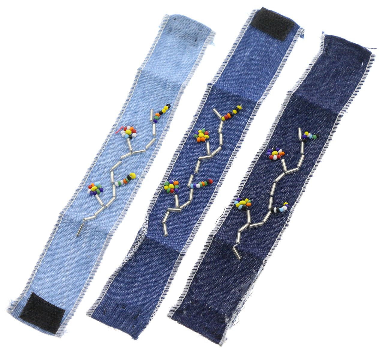 Bracelet, b2495, assorted shades of denim, with multi-color beads, Touch Closure closure, Each bracelet is individually carded.