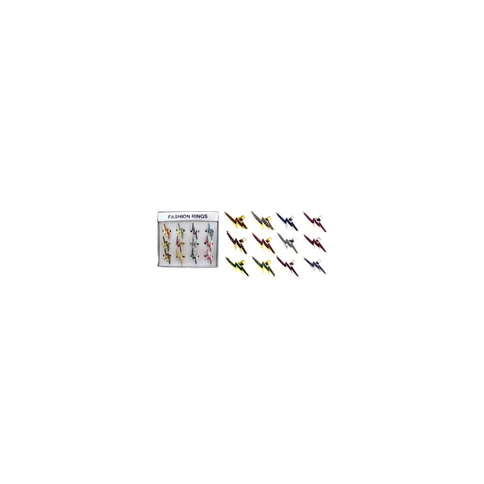 The Lightning Bolt Ring Display features a set of twelve stylish rings, six in gold and six in silver. Made from high-quality, durable materials, these rings fit most sizes and add a trendy touch to any jewelry collection. Perfect for showcasing or wearing, they offer a bold lightning bolt design in assorted colors, making them a must-have accessory.