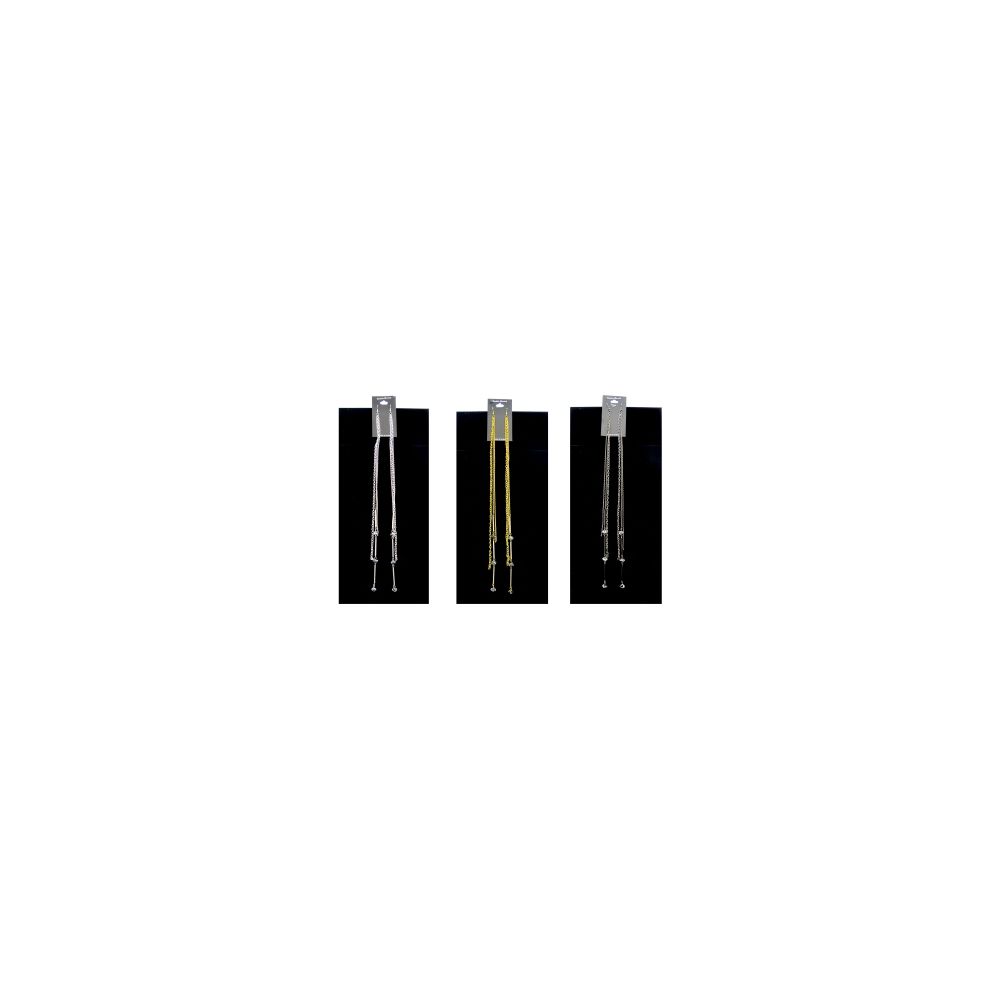 Long chain earrings with black and white marble like accent beads. Comes in gun metal tone, silver tone, and gold tone.