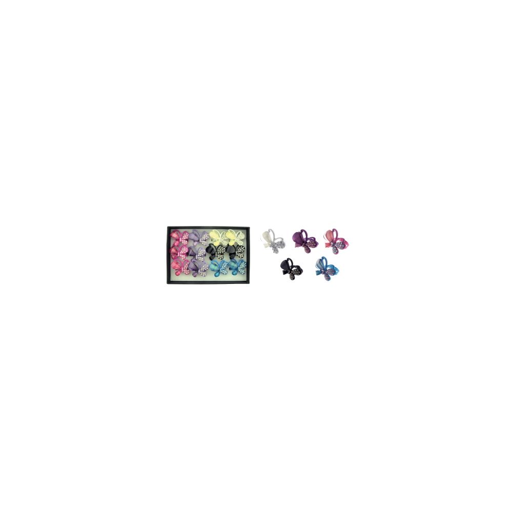 Delight in this charming ring display featuring butterfly designs in assorted colors. Each butterfly is elegantly adorned with rhinestones on one half, making these rings a perfect accessory for any occasion.