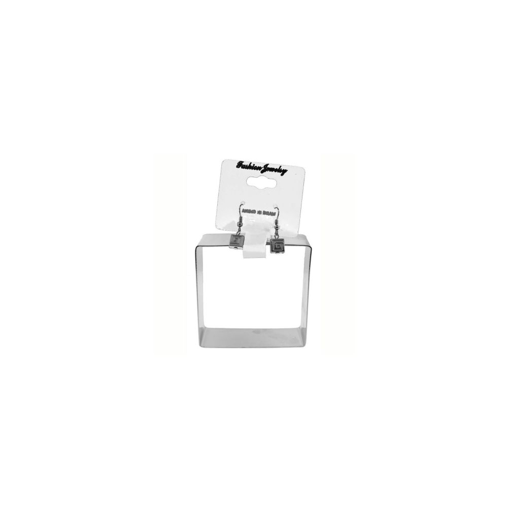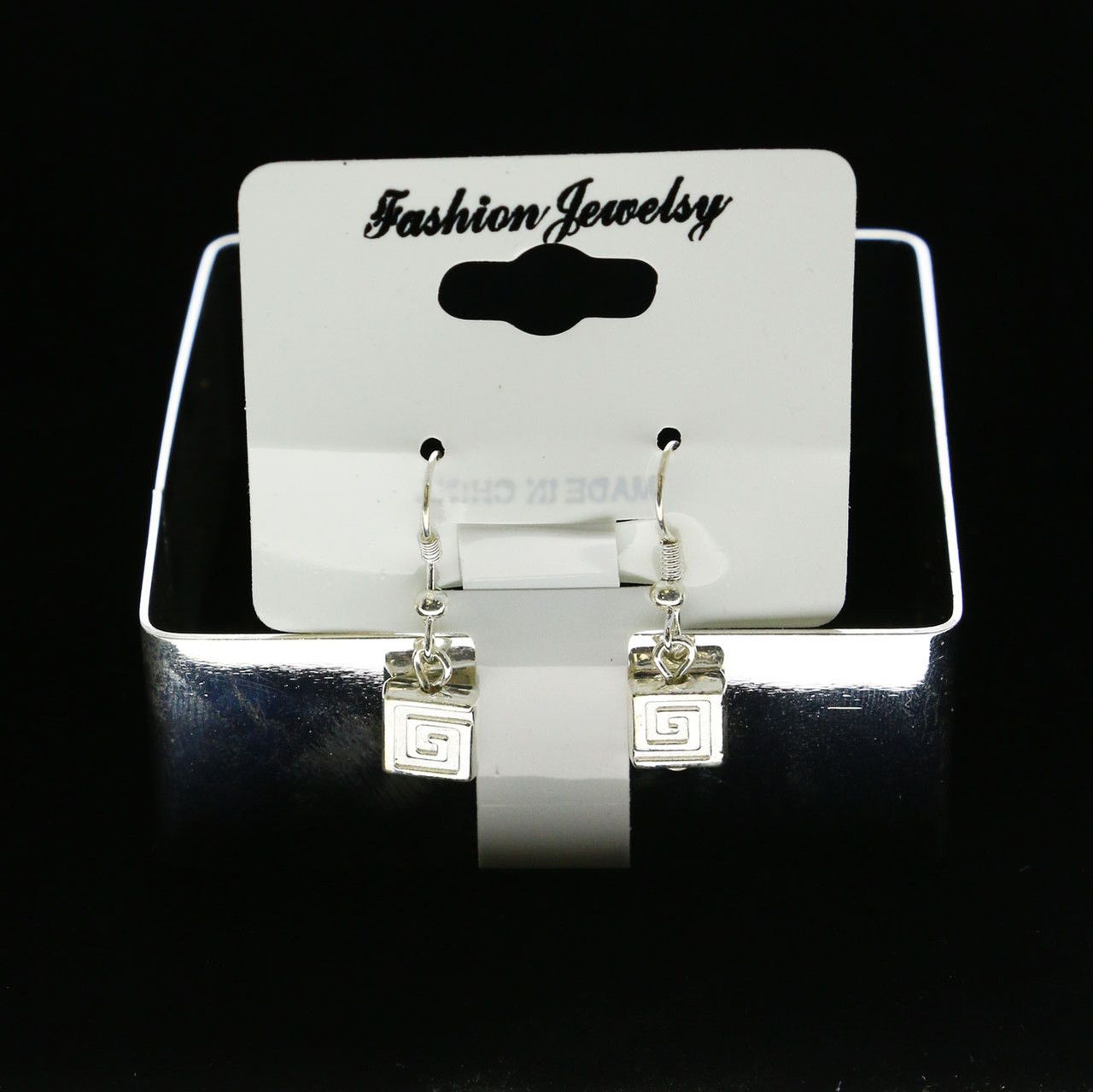Bracelet Earring set; Silvertone square bangle bracelet, 1 inch wide; Silvertone french hook earrings with matching silvertone dangle; individually carded and poly bagged.