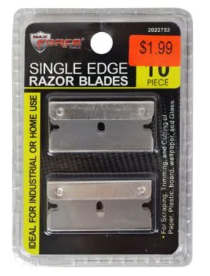 The Single Edge Razor Blades 10 Piece pack is designed for precise cutting, shaving, or craft use, offering sharp, durable blades for various applications.