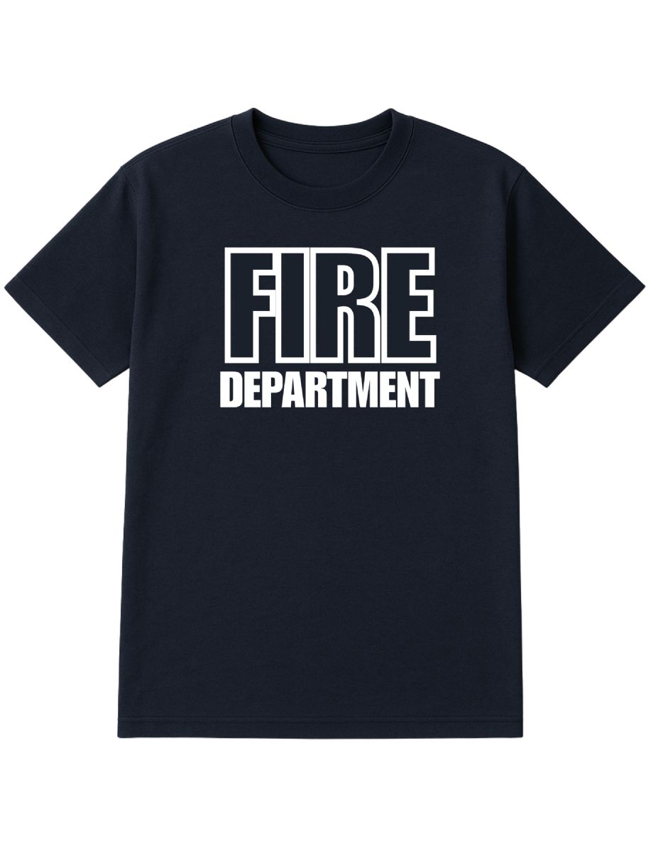 60 Wholesale Unisex Cotton Fire Department Printed T Shirt Navy With White Print Back And Front Size X-Large