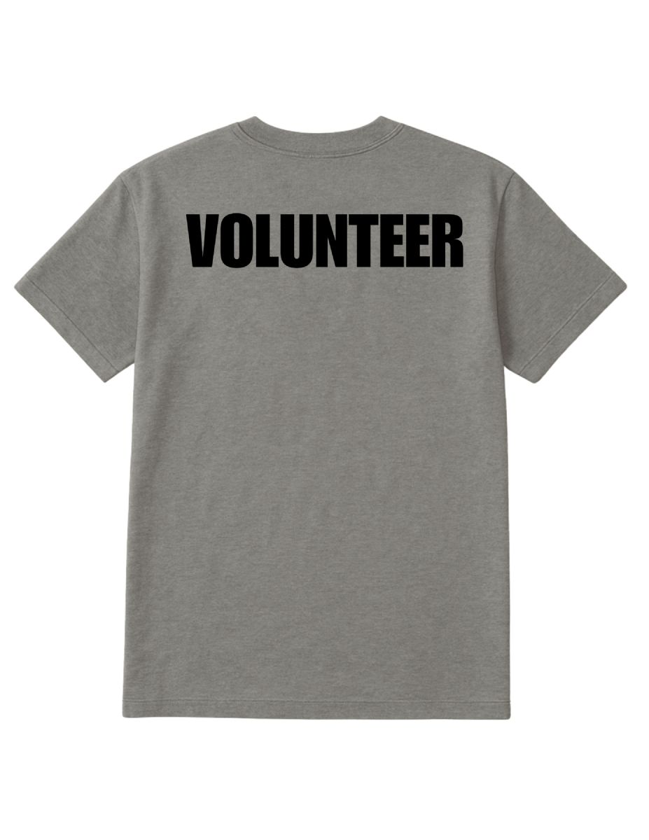 24 Wholesale Unisex Cotton Volunteer Printed T Shirt Gray With Black Print Back And Front Size Large