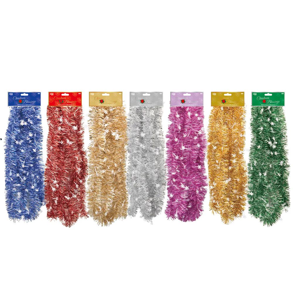 Create a winter wonderland indoors with this 250cm Christmas Garland featuring glittered die-cut snowflake accents in assorted colors?ideal for festive decorating.