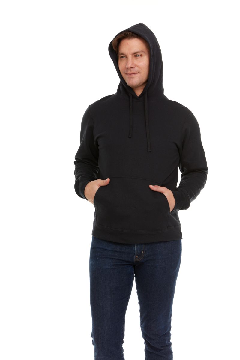 Fabric 271 g/m² preshrunk fleece knit. Includes air jet yarns for a softer feel and reduced piling. Double-lines hood with color matched, draw cord.