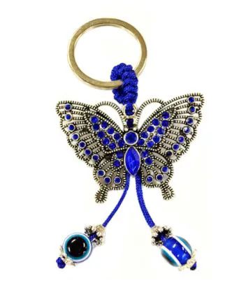 Add a touch of elegance to your keys or bag with this Metal Charm Keychain. Featuring a butterfly-shaped charm adorned with blue rhinestones, it combines style and durability. The silver-toned metal charm is paired with a durable metal O ring for easy attachment, making it perfect for everyday use.
