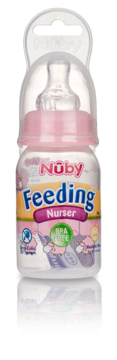 The Nuby Printed 4oz Bottle is perfect for newborns, featuring a fun design and a spill-proof valve for easy, mess-free feeding.