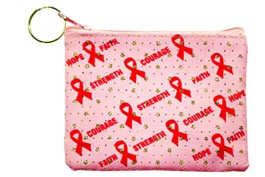 Show your support with our stylish pink ribbon coin purse. Featuring inspiring messages like hope, faith, courage, and strength, this coin purse is more than just an accessory. It's a symbol of empowerment. Includes a round metal ring for added versatility.