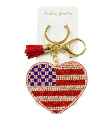 Rhinestone Keychain USA Heart