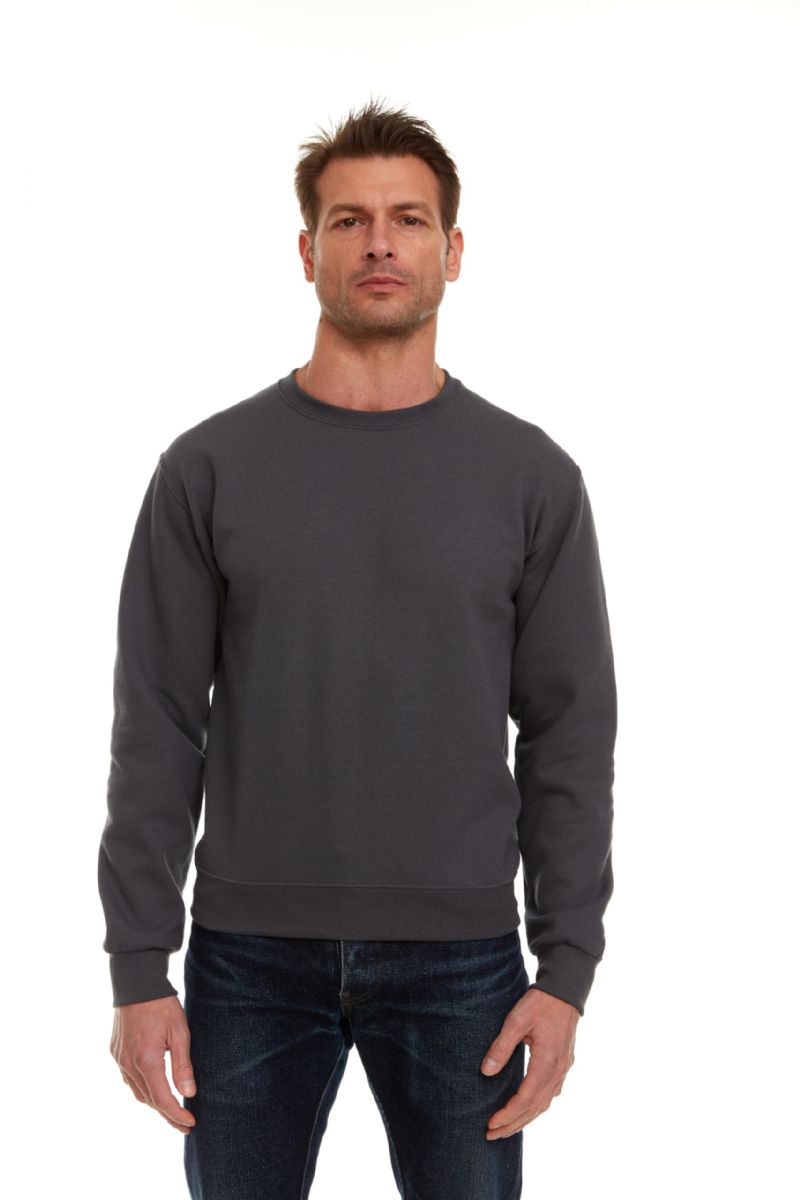 72 Wholesale Unisex Fleece Line Cotton Crew Neck Sweat Shirt Charcoal Gray Assorted Sizes