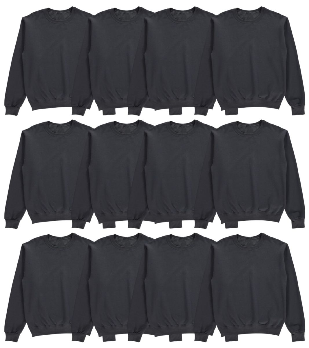 72 Wholesale Unisex Fleece Line Cotton Crew Neck Sweat Shirt Black In Assorted Sizes