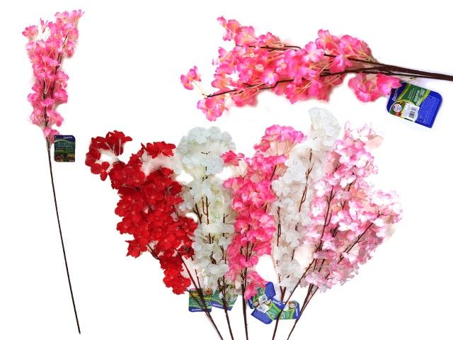 This Cherry Blossom Flower Bouquet is perfect for all your decorative needs. It measures 37.4"L and features 120 heads. The bouquet comes in red, hot pink, pink, white, and cream colors. This bouquet is a great decorative accent for any room.