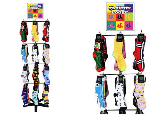The Wholesale Ladies Fashion Sock Rack offers a stylish and organized way to display or store women's socks, perfect for retail or personal use.